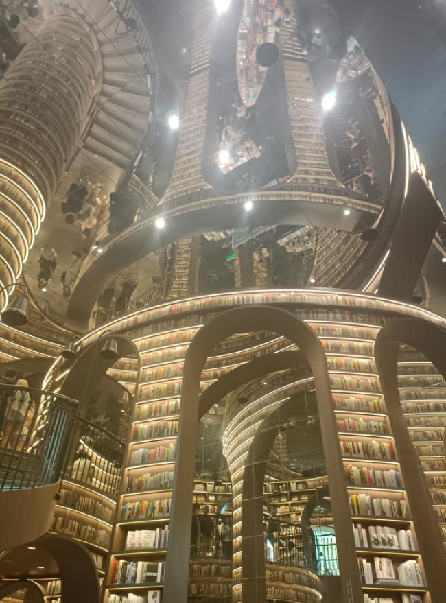 大约16:00到达融创茂店,里面人还不少,空调不行,二楼的钟书阁人最多,空间一般,纯属镜子魔法布置巧妙。钟书阁门前的奶茶店生意最好。