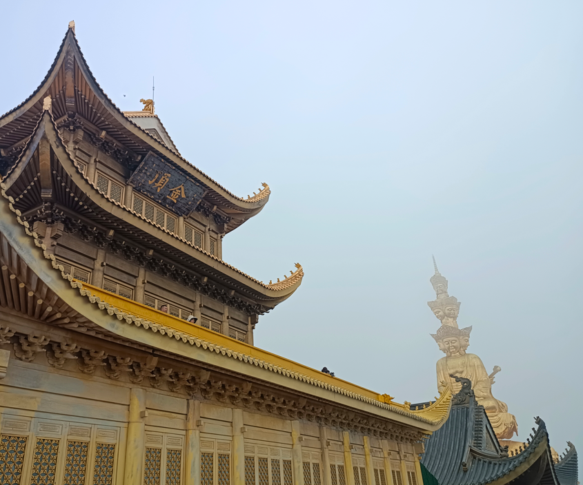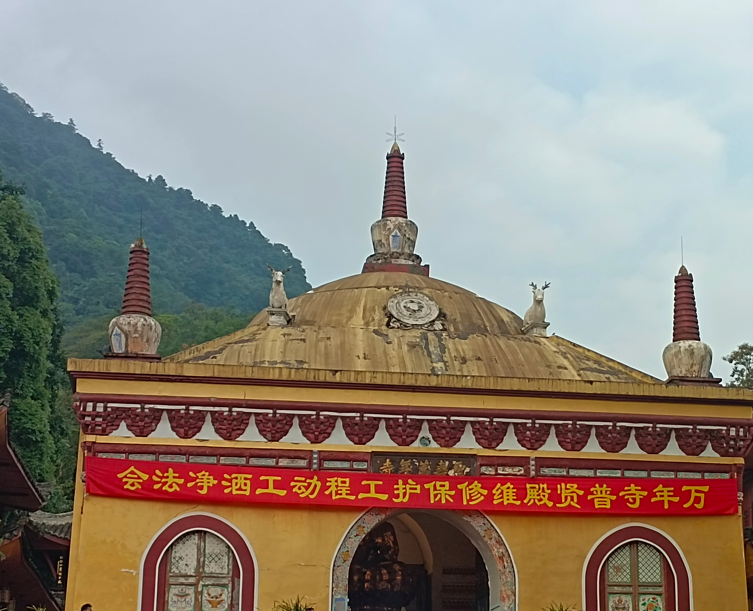 8月16日周六,6点起床收拾行李,走路去万里号,坐上旅游团大巴去峨眉山,峨眉天下秀,小团12人,10点半团餐后上雷洞坪,索道排队人很多,先从2号索道上金顶。
