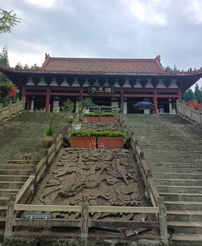 大约16:20走路去钟鼎寺,寺不大,但是处于蓥华山的中段,山下有万千松涛,山上有气象万千。