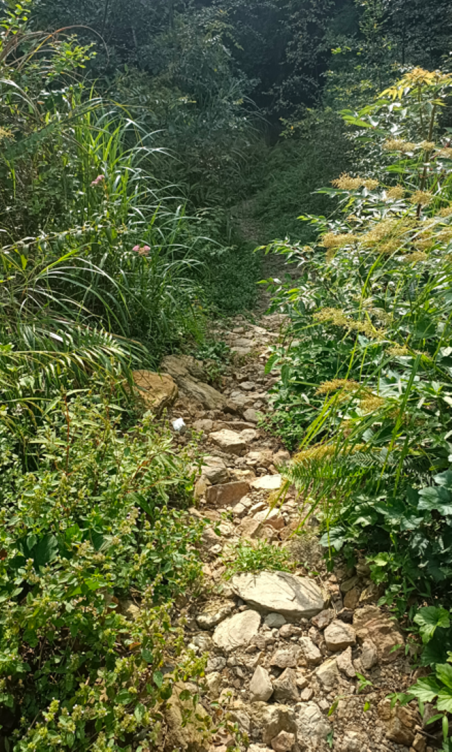 休息到大约16:10,计划去蓥华山森林步道中山子段,但是一方面没地方停车,另一方面走了一段发现树木丰茂杂草丛生缺乏管理,于是早早下来。忽然想起之前经过的时候发现两人从草丛中钻出来,查了一下地图,赫然发现就是该森林步道的出口,因此又特地停车去看了出口,果然草多路不好走。