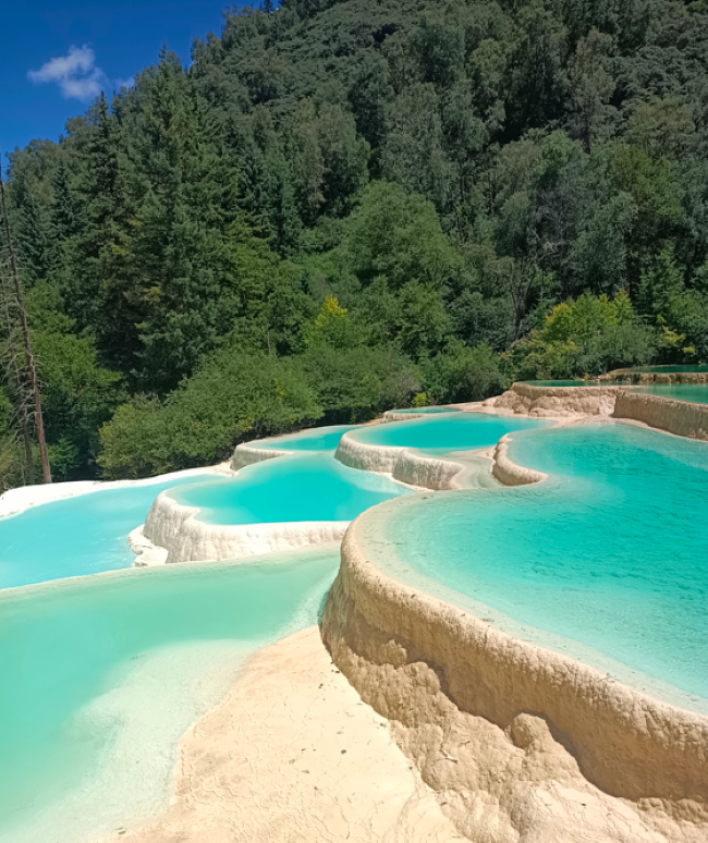 神仙池人很少,观光车师傅幽默,观光车票价相对偏高。钙化池群分布密集。