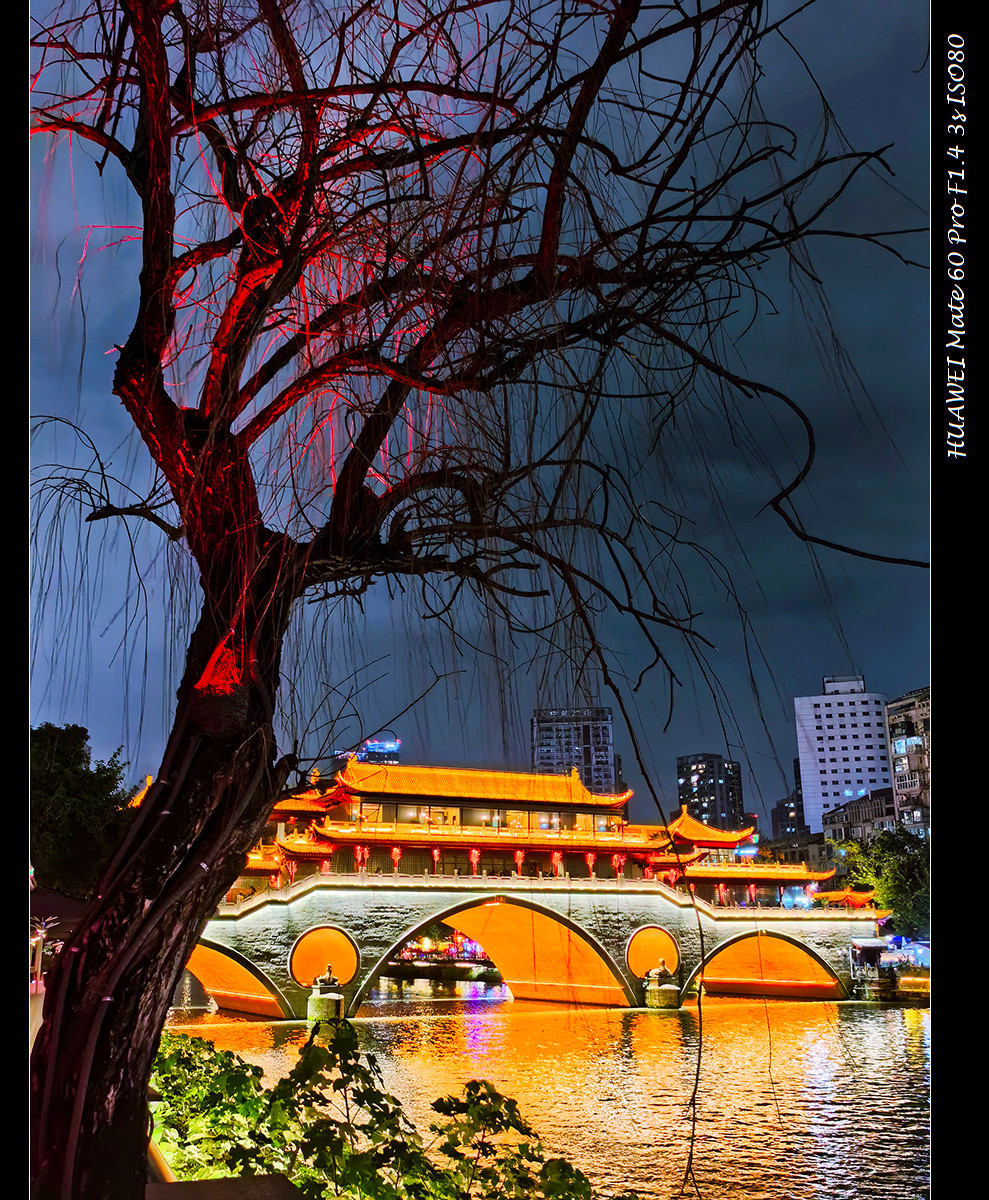 几个熟识的其他单位的参会人约着一起逛了春熙路和太古里,随后沿着府河慢慢走到合江亭,走到九眼桥,这里又是夜成都的一个热闹所在。九眼桥是地图上的一个标识,南河上那座灯火辉煌的廊桥是安顺廊桥,往往也被当作九眼桥,这并不重要。当晚香港明星杨千嬅和几个网红在桥上做活动,聚集着一堆粉丝,我们也凑在人群里等了一会,远远的看了一眼离场的杨千嬅,也算在成都的一次惊喜偶遇。