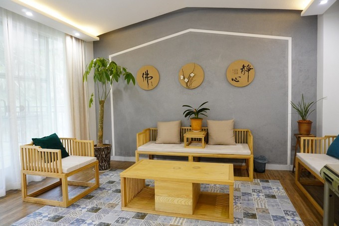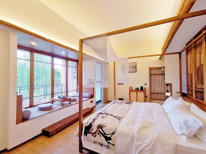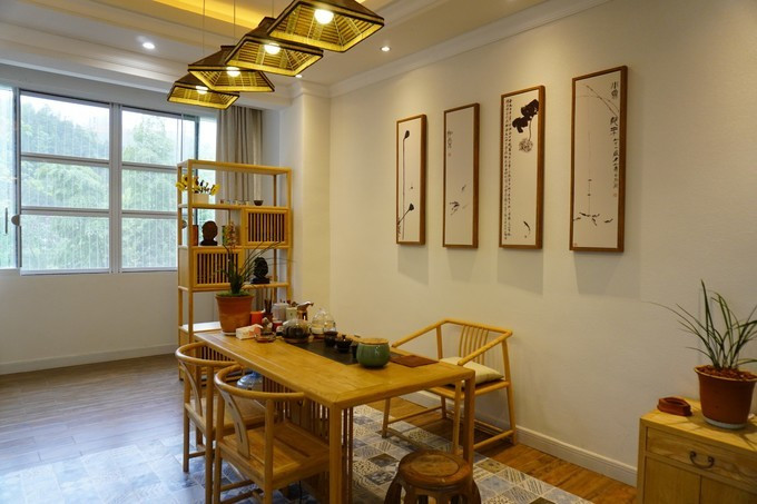 民宿设计由自己一手打造,国画书法精髓在茶盏里,在房间里,难怪会得道众多客人得喜欢,甚至有作家长期作为灵感居所入住。