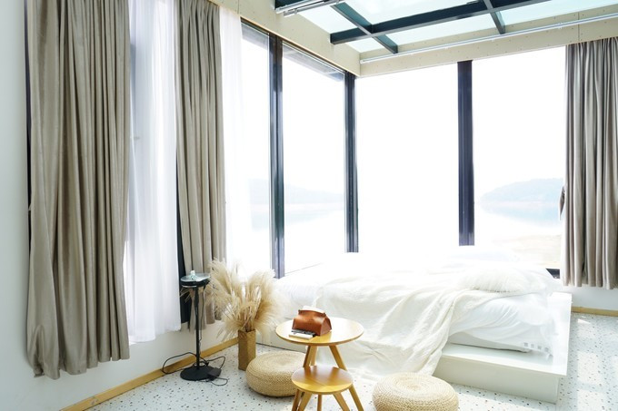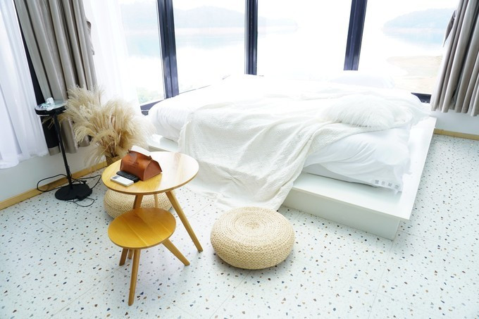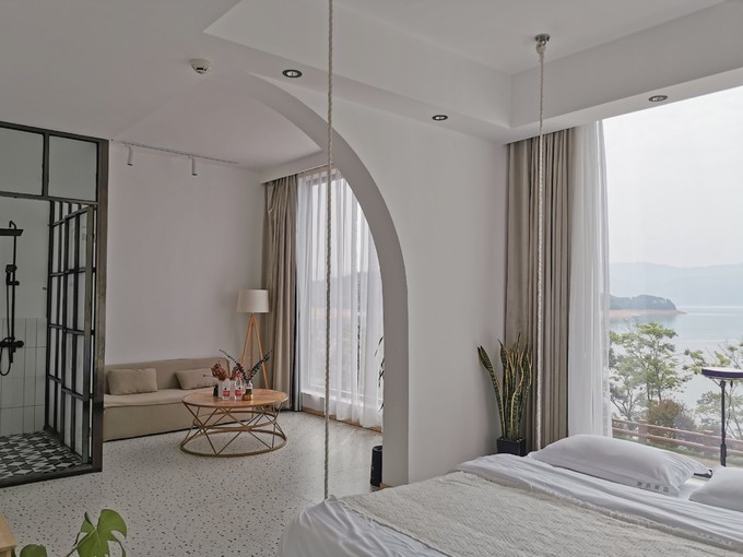 筑云的名字很美,它确实建立在大东江的云端之上,楼顶的大露台,是老板的最爱,寄情于山水青绿,在这眺望远处的大东江甚美。老板说,每一位住过的客人都无比热爱这个大露台,可以烧烤,可以聊天,可以看漫天的星星,可以天南地北。爱它的心悠然自得。