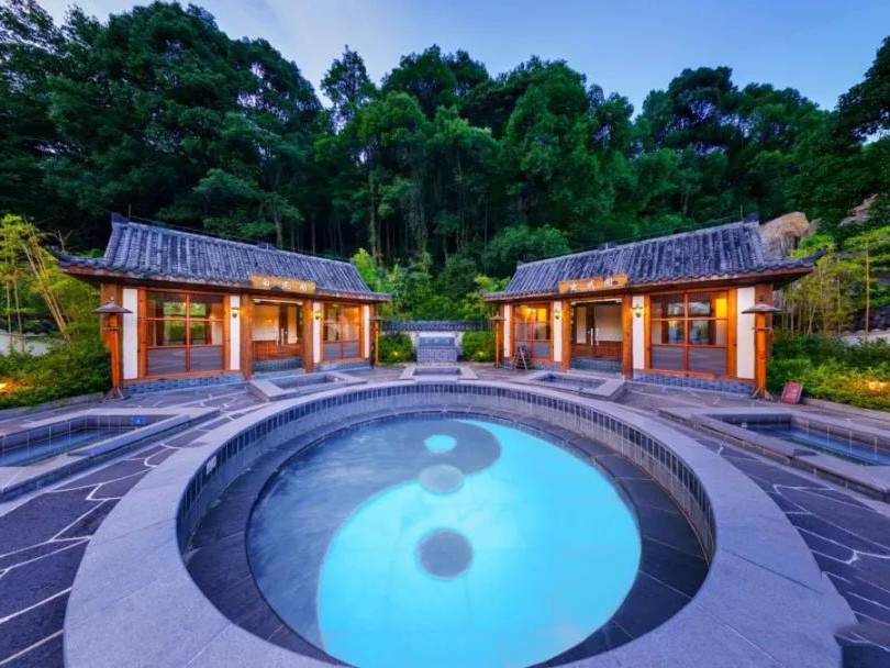 温泉中心主体高2层,设施齐备,可同时容纳1200名宾客沐浴,室内外泡池100余个,1个地热带房;二楼是休息厅,设有茶歇区。同时还设有7间功能房:熔岩房、玛瑙房、木纹石岩盘房、汗蒸房、冷冻房、溶盐房、湿蒸房等项目。