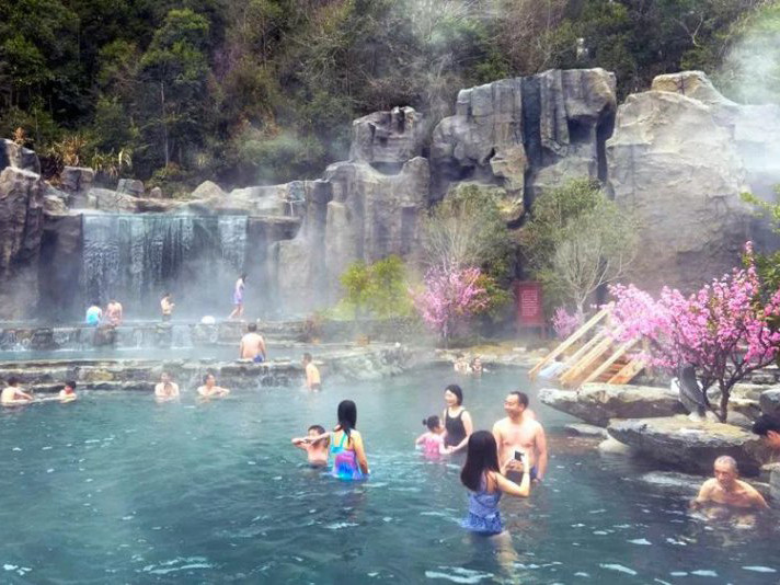 这里的温泉极具养生功效且富含天然矿物质,温泉出水温度高达60度,属较为罕见的天然氡温泉。室内室外皆有温泉,占地近3万平方米,100来个大小不一,功能各异的特色泡池。