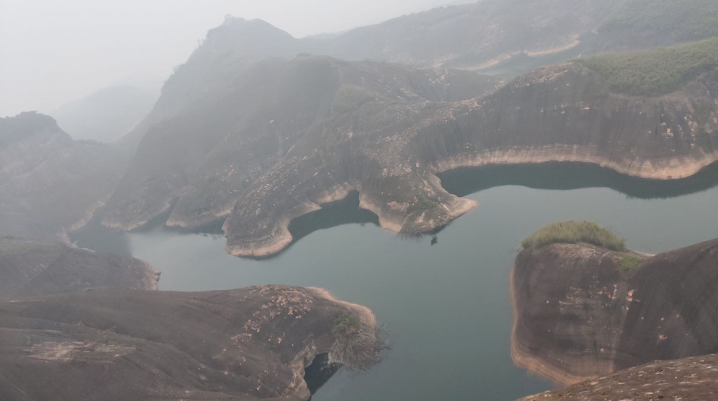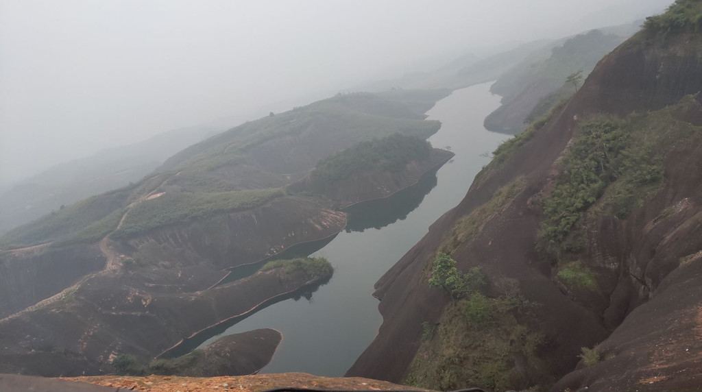 酒店出门直接走几分钟就是游客中心,换票后直接就在旁边进景区坐大巴(只有这里需要验票后才能上车,后面再上就不需要了),而且只送到2号点这里,然后就只能下车去栈道观雾了,司机师傅说现在车子全部都是送到这里就返程,要到7:20还是40以后才会有其他车开往前面,没办法只能老老实实跟着人群走了。刚好碰到阴雨天,雾也就那样,没有多做停留,沿着栈道一路徒步到3号点(时长大概在40分钟左右)...没办法,沿途没有出口,也不可能再走回头路;3号点排队上车,4号点不停车,猴古山瀑布、东江大坝外景这两个点全部是不停车,只能在车上看的,车子直接到游船码头终点站,达到时间大概8:20左右。