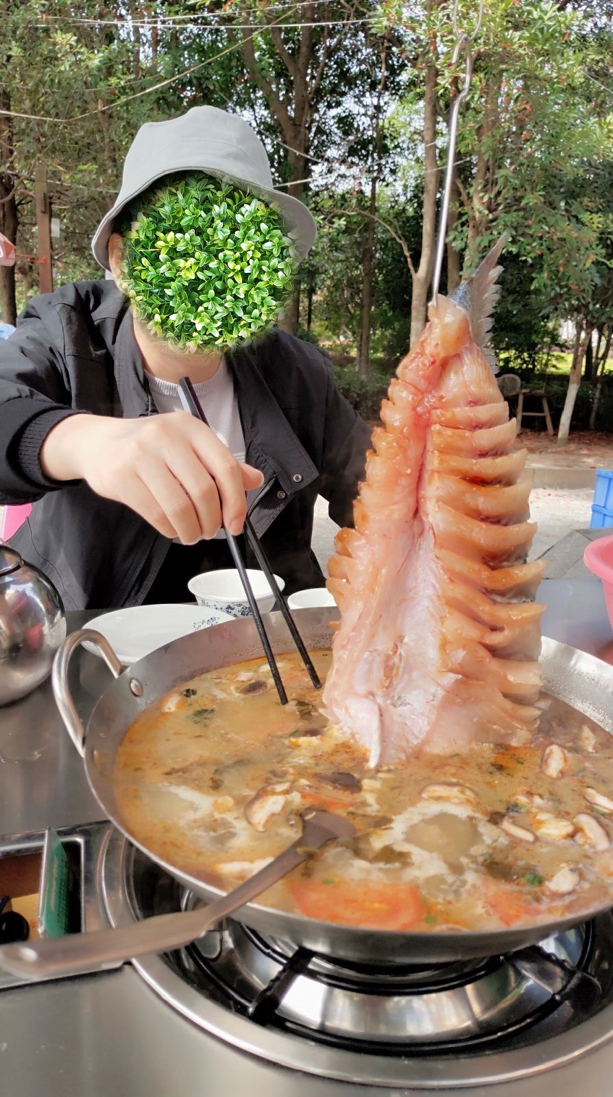 中午听客栈老板的,去吃的特色吊锅鱼(鱼吊起来的,吃多少就在汤里面煮多少),说是报客栈的名字会有优惠。结果一分钱都没有给我们优惠...老板会送一些小东西给品尝。没有吃过的可以试试,不算贵,而且分量特别特别足,我们两个吃了一个多小时,还是把鱼尾那一截给浪费了。
