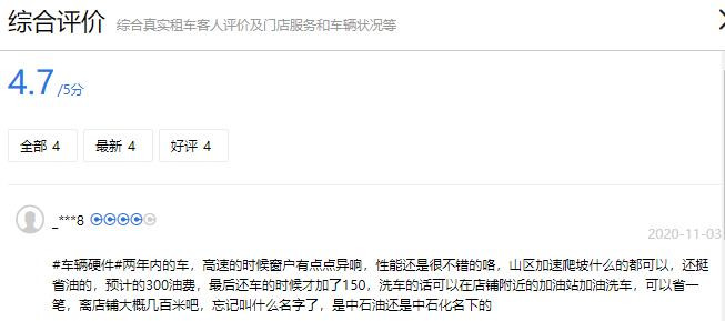 算好时间,早上启程直接去店里还车(还完之后老板会送你到郴州西站),因为如果超时还车会要提前联系那些,很麻烦。下图是我在携程的租车评价,还说了加油和洗车的问题!后悔没选那个一年内新车的,三天下来也只是贵了80块钱...