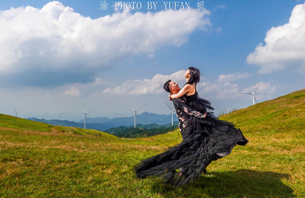 由于海拔比较高,这里除了有湖泊、草原、森林、山寨等景观之外,山上还修建了大量的风电机组,特色适合拍照,所以每天都会有一些情侣到此拍婚纱、写真照,将他们的幸福瞬间定格在此。