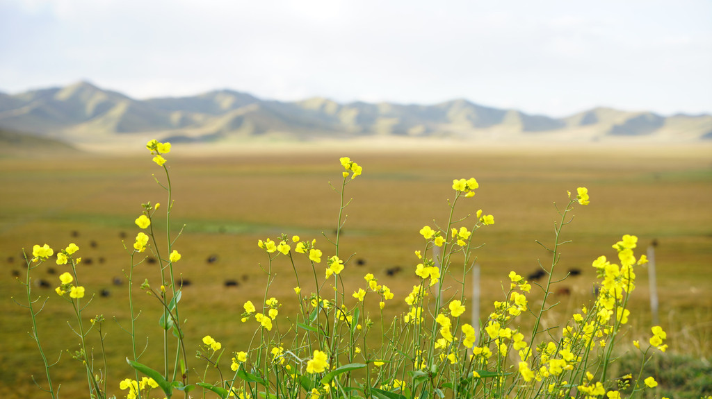 一早出发去阿万仓湿地,广袤的草原水草丰茂,牛羊肥壮,羊角横向打圈,很有特点。