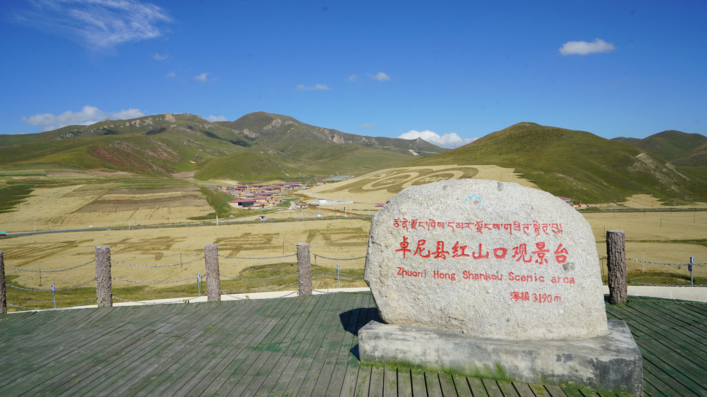 红山口观景台可以拍到油菜田的秘境卓尼字样,