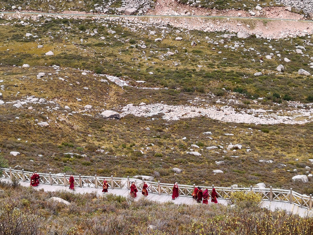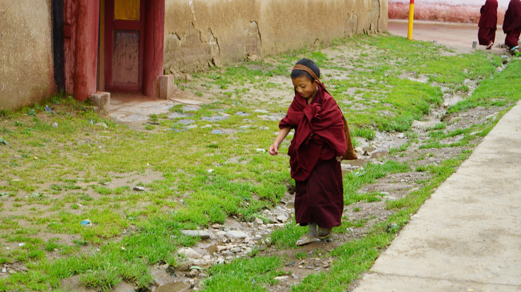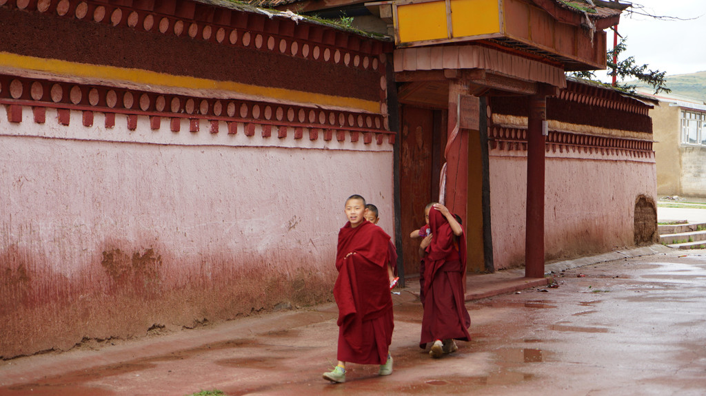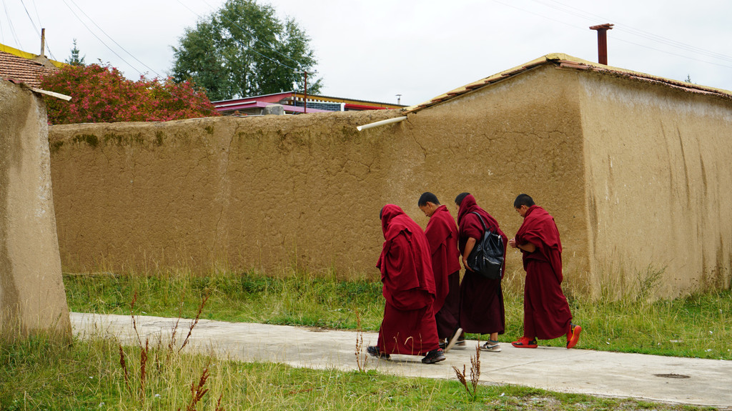 回停车场的路上,一群小喇嘛欢声笑语的狂奔而来,给金色的背景带来一束彩霞。