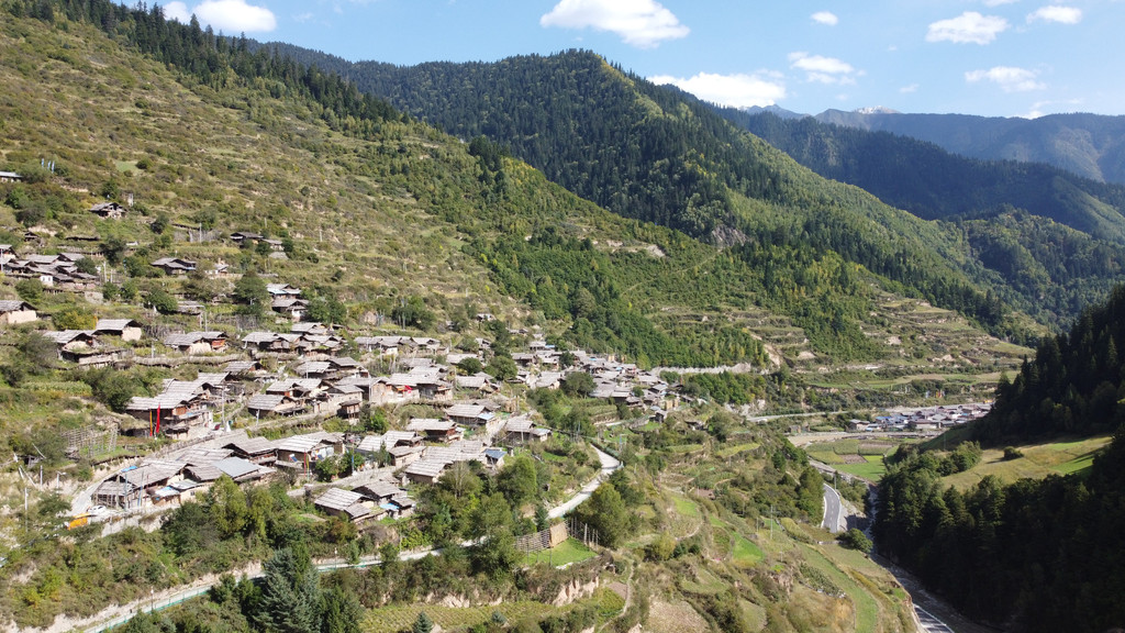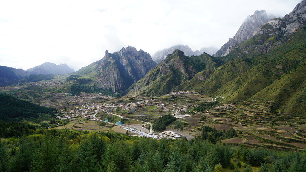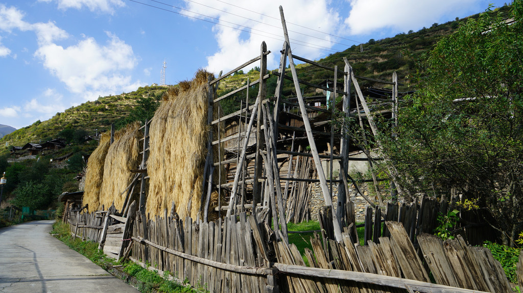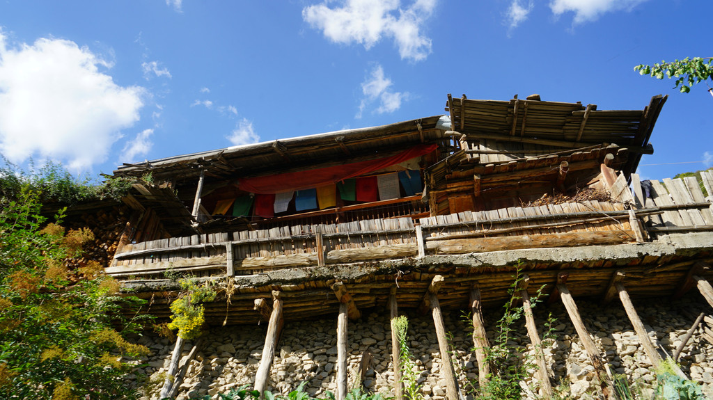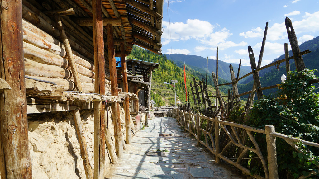 去大录古藏寨看看,古寨依山而建,和贵州苗寨很相似。大门处有些老人在聊天,已无人居住,人已迁往居住条件较好的山脚。现存的房屋木制结构显得有些破败,但大录寺院刚完成翻修,金碧辉煌。上寺院的道路还在修建中,所有的人都很和善,全对着你微微笑。