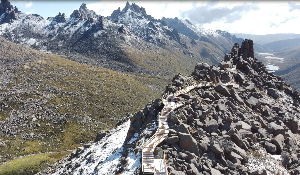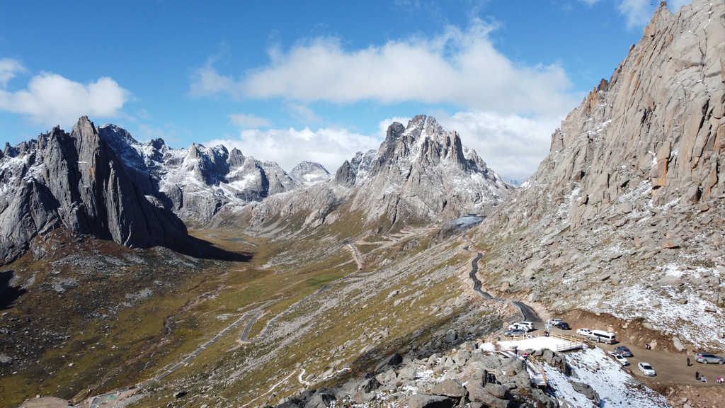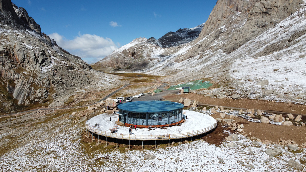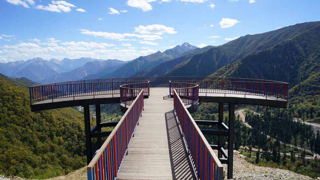 游客中心购票后,可以开车进入,直接前往盘羊坪服务中心,在海拔4250观景台高处欣赏莲宝叶则全景