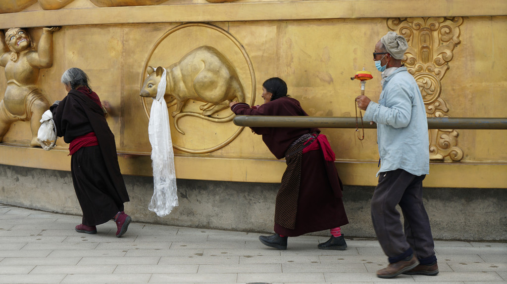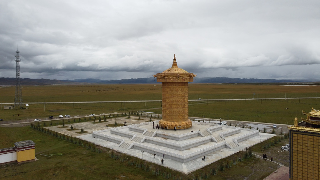3、继续南行至阿万仓看娘玛寺,那里有世界上最大的转经筒;