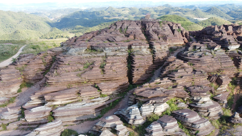 贵州铜仁松桃县腊尔山红石林景区正在开发中,还未收门票。它形成历史约4.5亿年,原是一片大海,经地壳运动和侵蚀、溶蚀形成。石林颜色褐红色,在夕阳时分更鲜艳。游客可以穿梭其中,奇形怪状的石头犹如人工挫成般。