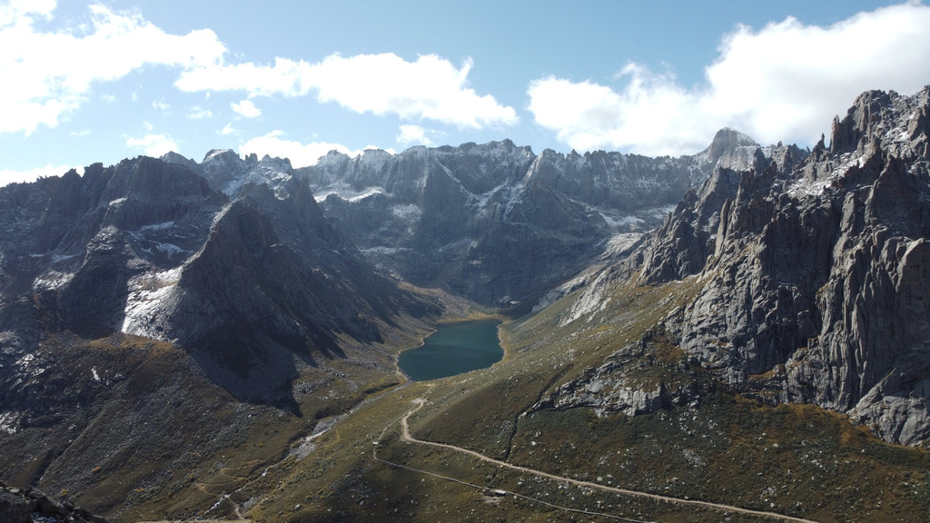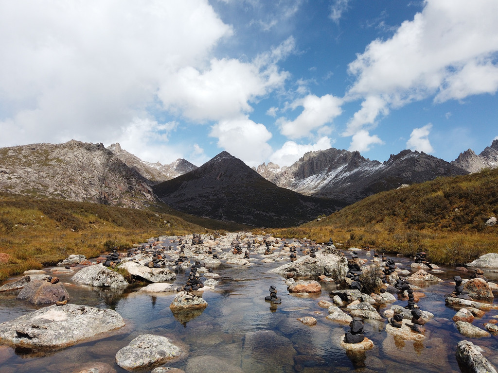 天气终于放晴,出发去莲宝叶则,它矗立于阿坝、久治、班玛三县之间,就像高原上隆起的一座巨大石头城堡,期间奇峰异石、冰川遗迹和雪山湖泊,是个魔界仙境。