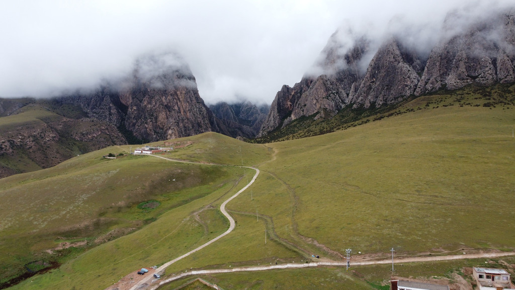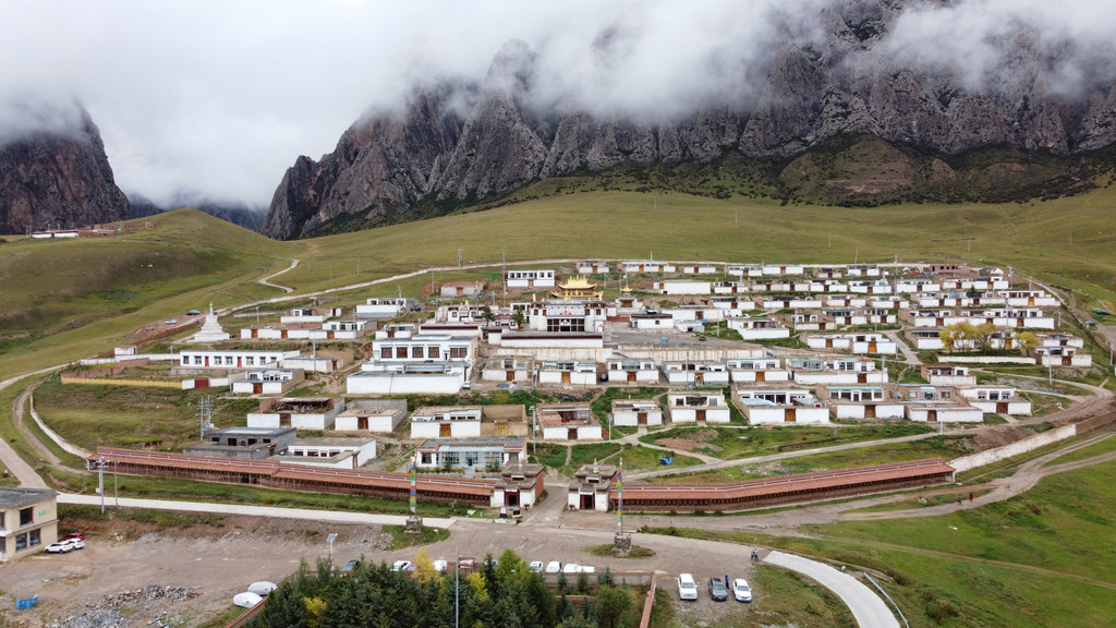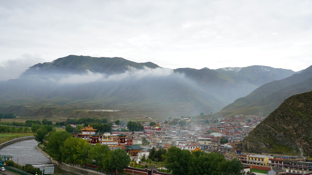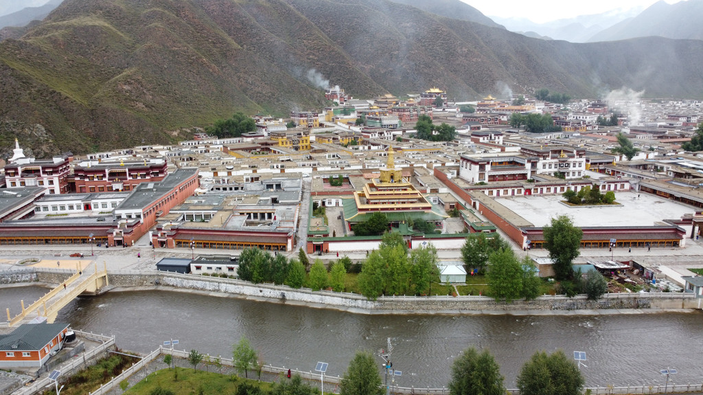 天气阴冷,在拉卜楞寺对面观景台用无人机拍个全景照。