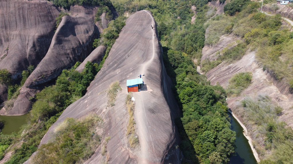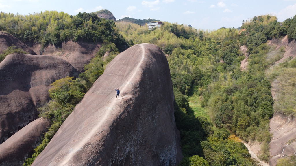 高椅岭由于即将正式开放,未能进去游玩,就去了附近的牛背山。牛背山是一大块岩石,形似牛背,行走在背脊上,两边悬崖峭壁,还是相当惊险,这是个打卡拍照放无人机的好地方。