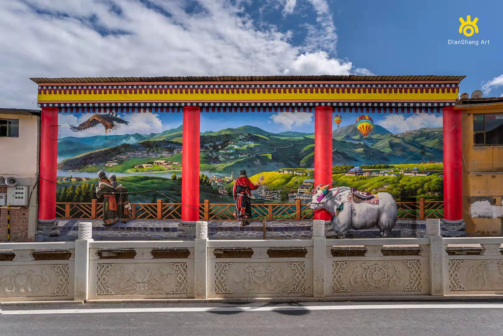 晚上至郎木寺镇。酒店门口就见看到红石崖,对着小河的那副壁画非常生动,牦牛呼之欲出,手摇转经筒的老人,那背影仍记忆犹新。这张壁画当时未拍照,看抖音时竟然看到画者,斗胆要副完整壁画,我得到啦,太开心了!