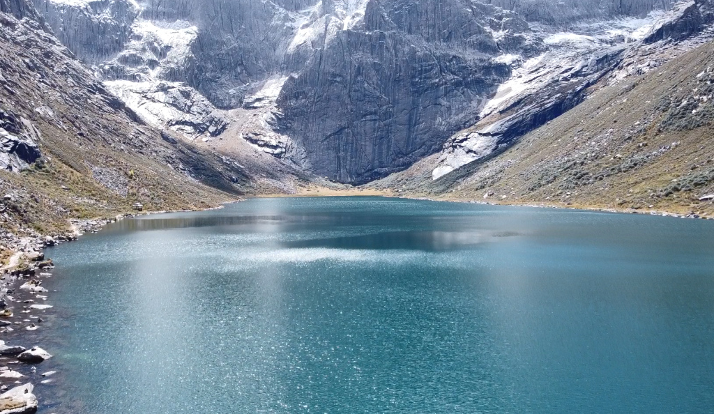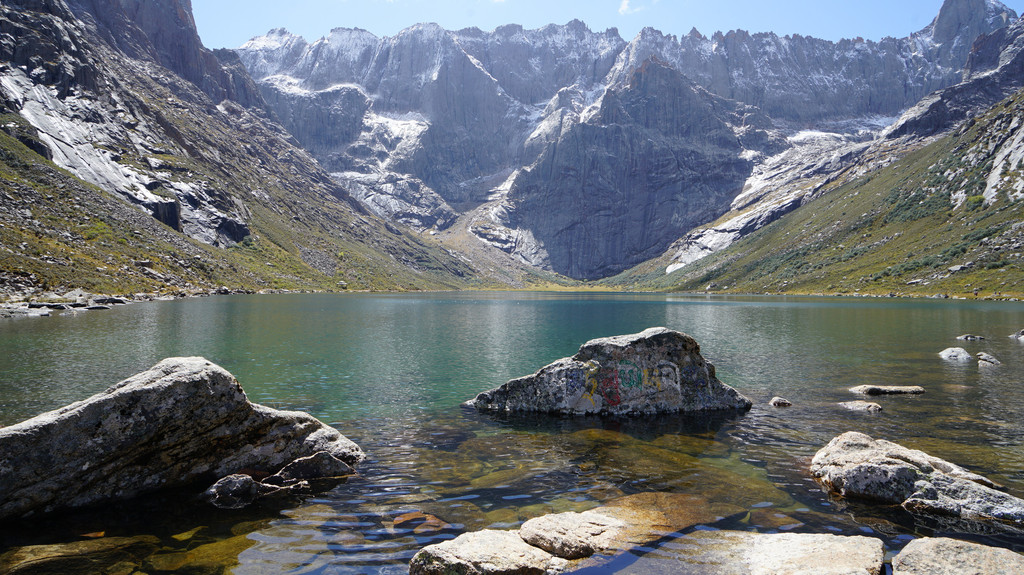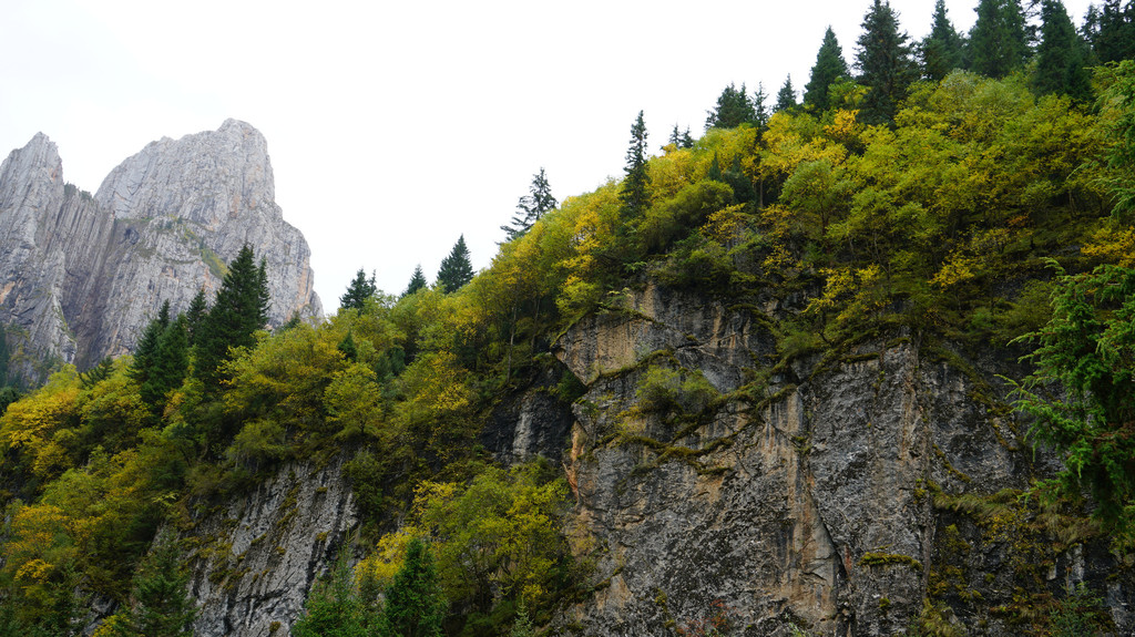 下山前往扎尕尔措,湖水清澈宁静,湖后是如刀劈斧砍般的绝壁长城,大有一片孤山万仞山的雄伟气息。