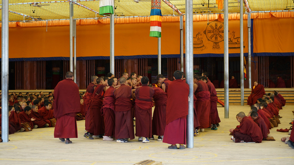 想去莲宝叶则,天气不好,在阿坝县继续等待。格尔登寺,是阿坝县规模最大的藏传佛教格鲁派寺院。进入寺院僧人们正在学习辩经,一批二十多个人,大声呼应,虽然听不懂,认真的态度还是感受到了,好几个信徒带着行李虔诚地围着,或拜或坐。