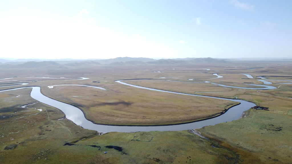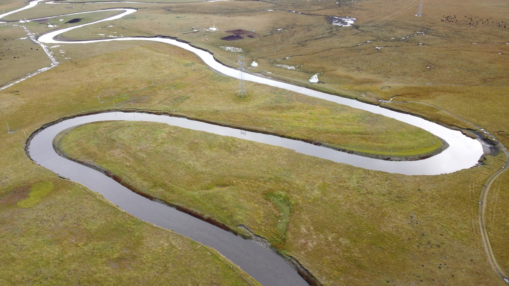 夕阳时分放飞无人机,拍到了草原弯曲的河道。