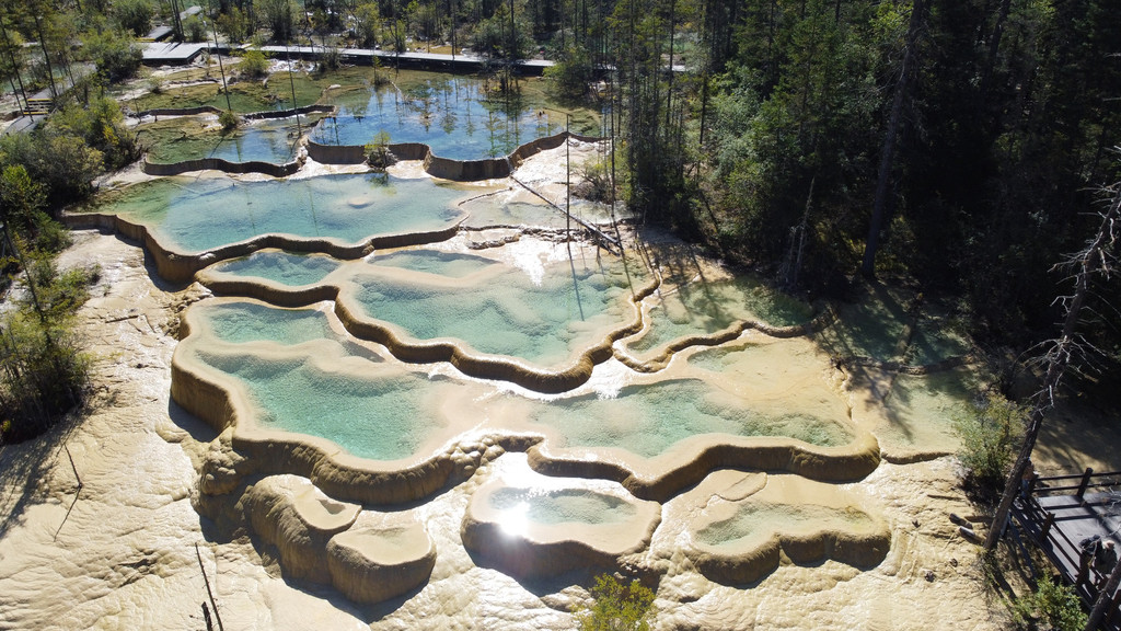 “嫩恩桑措”藏语意为仙女沐浴的地方,又称神仙池,是个集九寨和黄龙于一身的人间仙境。成片的山坡给黄色、白色钙质包裹,形成大小不等水色明艳的水潭,更有高山海子和原始森林。景区进门右上左下,行程合理。嫩恩桑措游人不多,我们还在游客中心吃了午饭,价格合理环境优雅。
