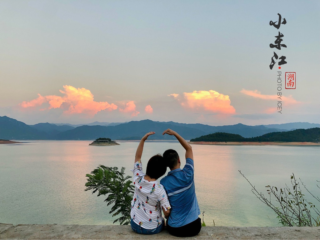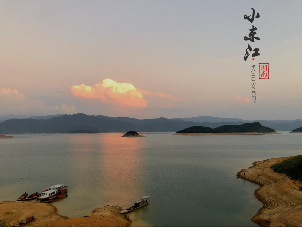 太阳慢慢落山,晚霞下的东江湖也极美无比。
