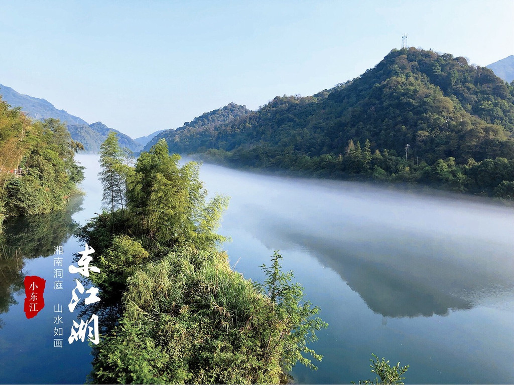 雾漫小东江东江湖位于 湖南 省 郴州 市 东北 部的 资兴 市境内,是南岭和罗霄山脉南部(八面山脉和诸广山脉)合围的一个湖,是耒水的源头之一,是国家级风景名胜区,国家AAAAA级旅游区,东江湖纯净浩瀚,湖面面积160平方公里,碧波万顷,景象万千,其水质达到了国家一级饮用水标准。