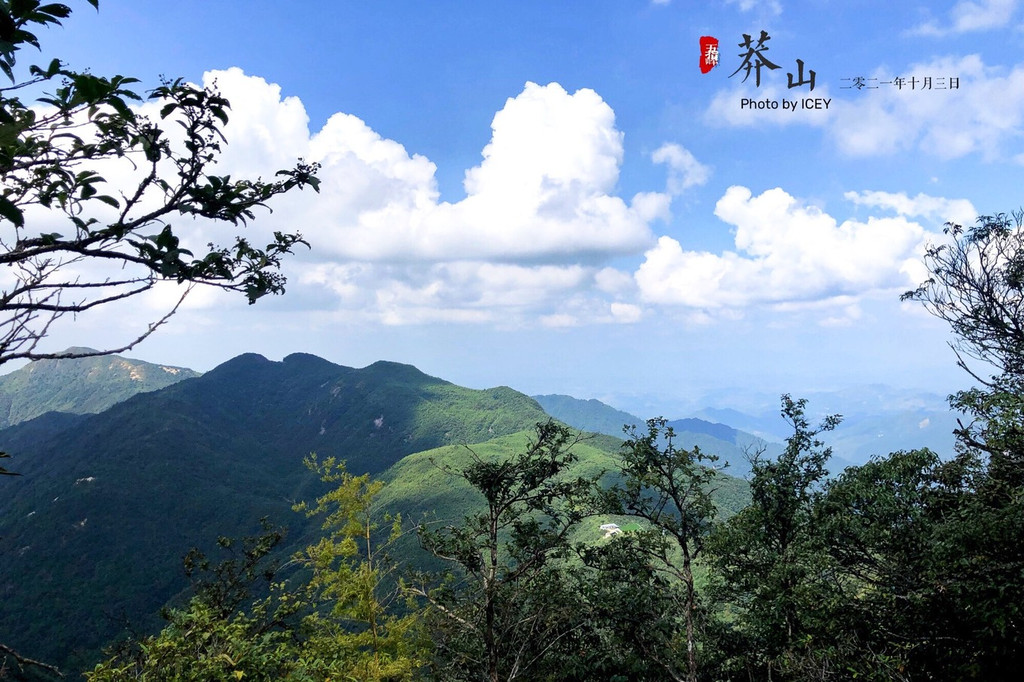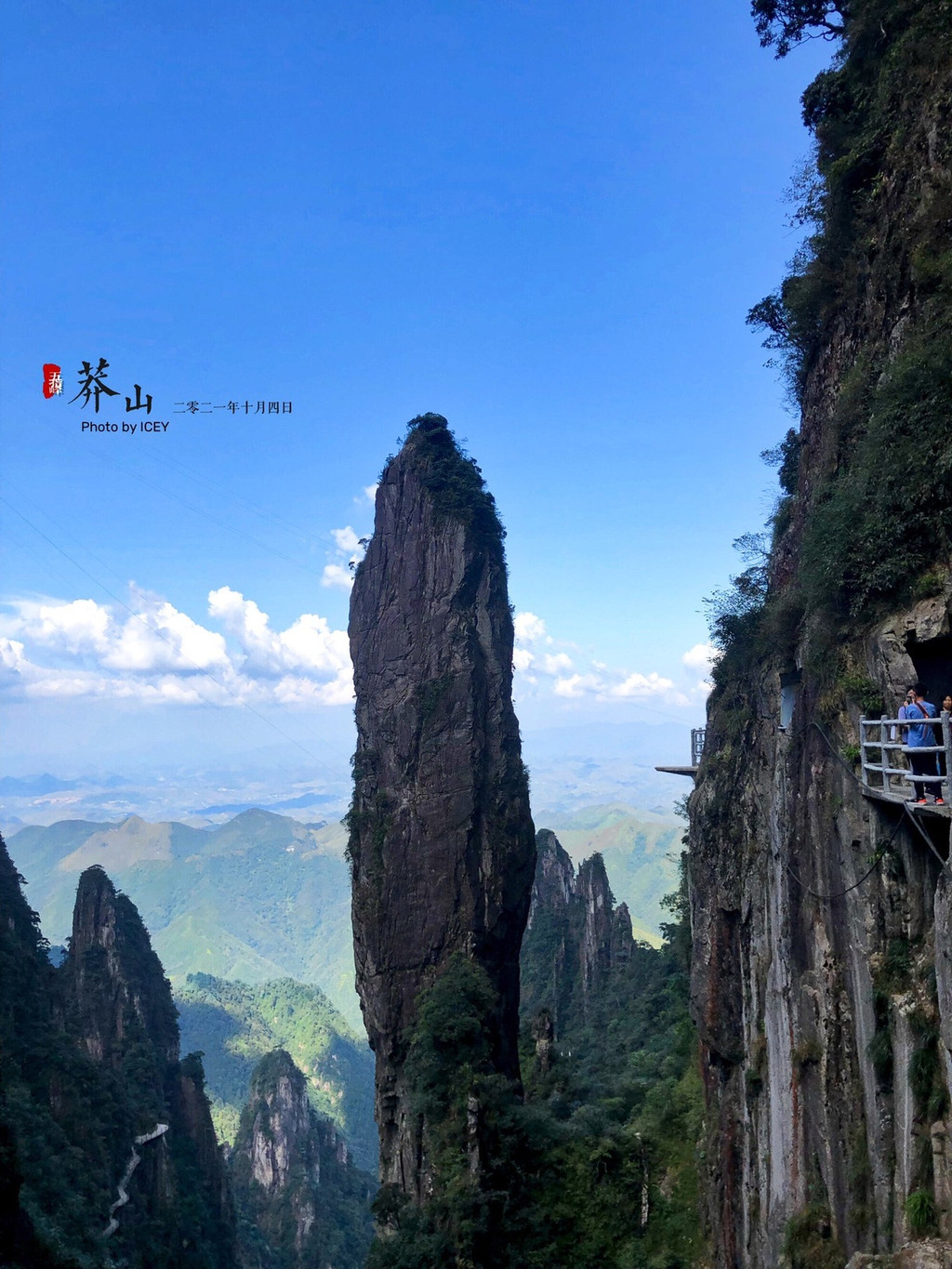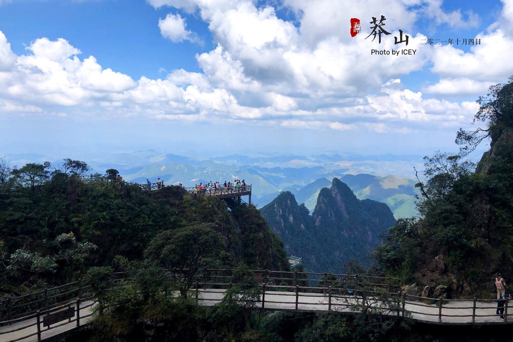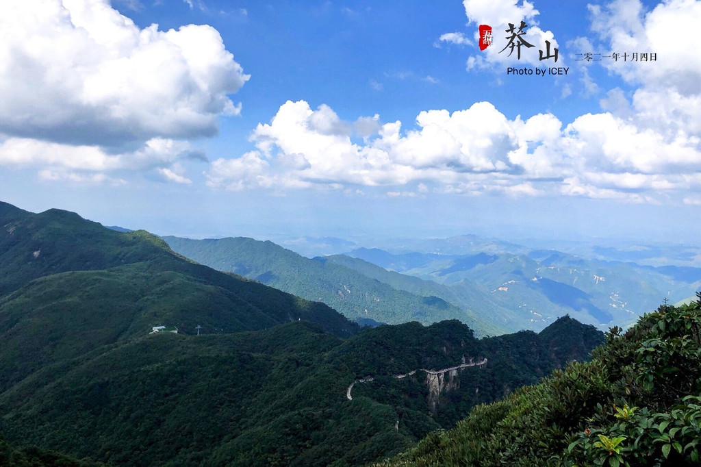 山顶温度凉爽很多,今天属于阳光超级明媚,能清晰的看到山下远处的东江湖,和北边的古南岳山脉。