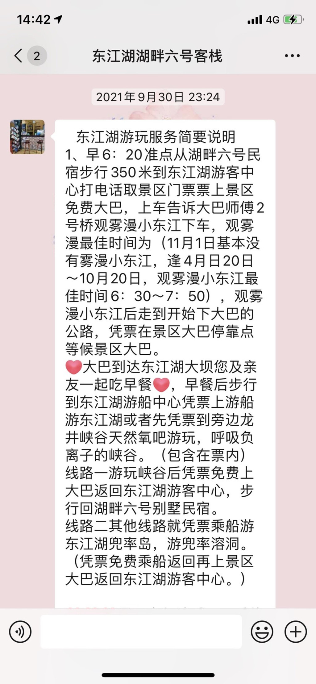 老板特别善谈,邀请我们喝茶聊天,深夜11点多了还发了游玩需知给我们,特别详细!下次有机会去,还住他家。