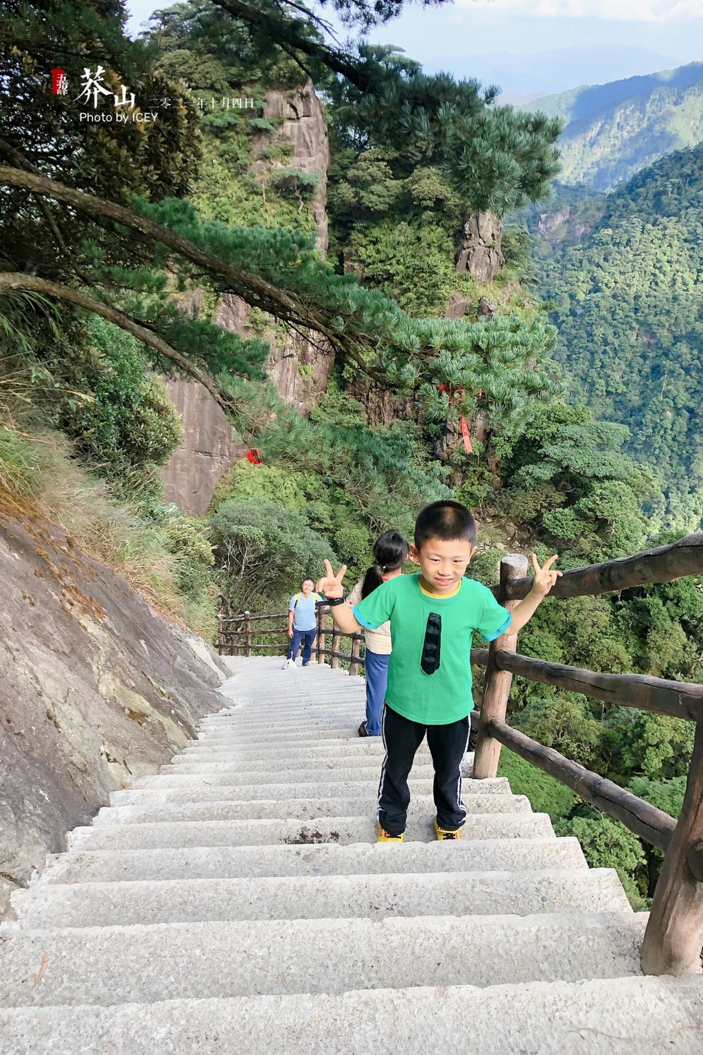 。接近70度的楼梯,走到一半,我心里超级担心,两个宝贝千万得一步一步扶好。五指峰 像不像呢?我们也比个“🖐🏻️”吧!