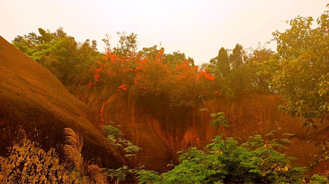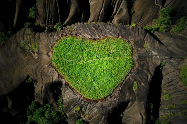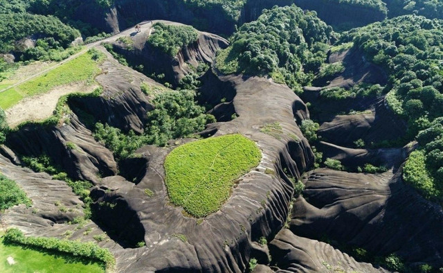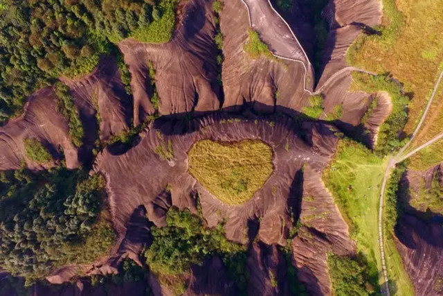 来这里一个重点就是看这个丹霞之心。闺蜜说这里是自然形成的。最开始我真的不相信啊。因为太是心形了,总觉得是后来认为设计的。所以,在我最后得知它真的是天然形成的图像时,整个人都是震惊的。有什么比大自然的设计更浪漫的呢。就这样,我们在高处看了它好久。而且,我们还专门租了无人机来这里拍着一张丹霞之心。