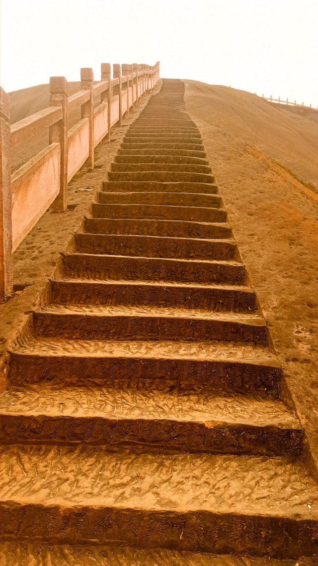 从小草原这边去到大草原的时候必须经过云梯。这个云梯是凿出来的,石头特别坚硬,凿出这个云梯肯定也要花费很大功夫。我们就这样一点点走上去,似乎就离大自然也更近了一些。