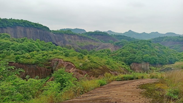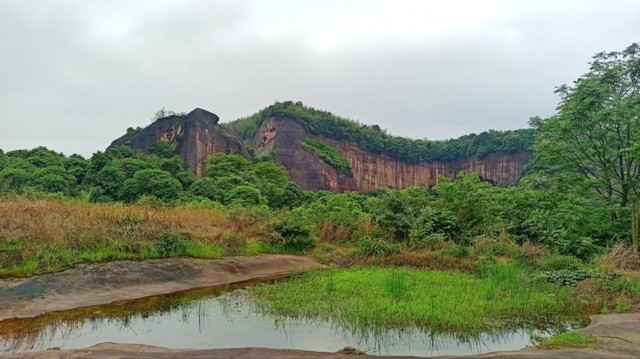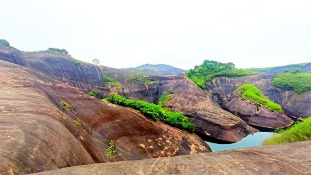 高椅岭是非常有名的丹霞地貌。这里的水是绿色的,这里的山石是红色的,再加上山上的绿植,天空中的白云,景色真的太迷人了。