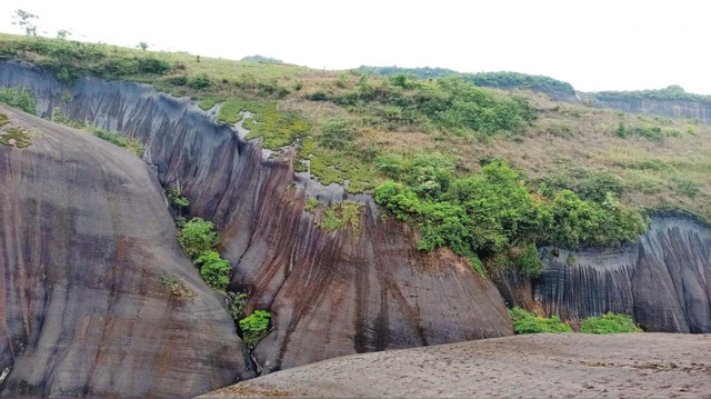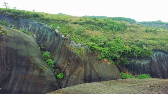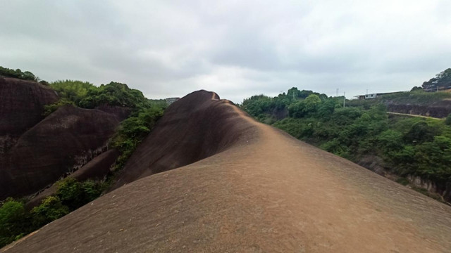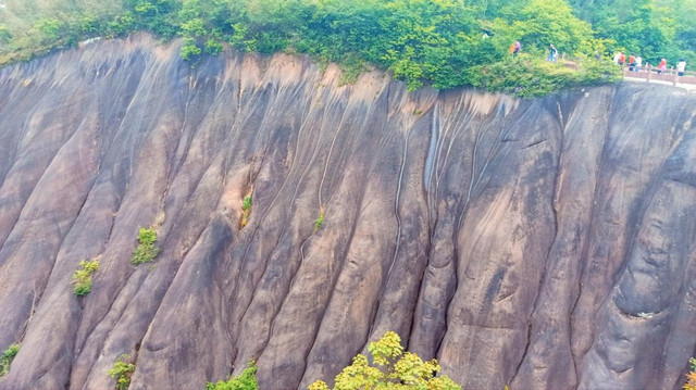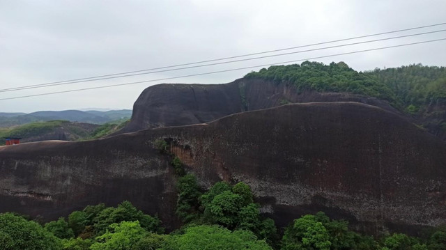 这里是刀背山。从高椅岭下山的时候,遇见了刀背山。远远看过去,确实很像刀背一样垂直而下啊。我们真的走到了刀背山,这边的路很窄,走路的时候要小心一点。另外,爬山的时候要注意安全,不要去山头那里。