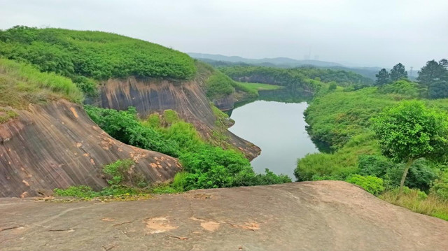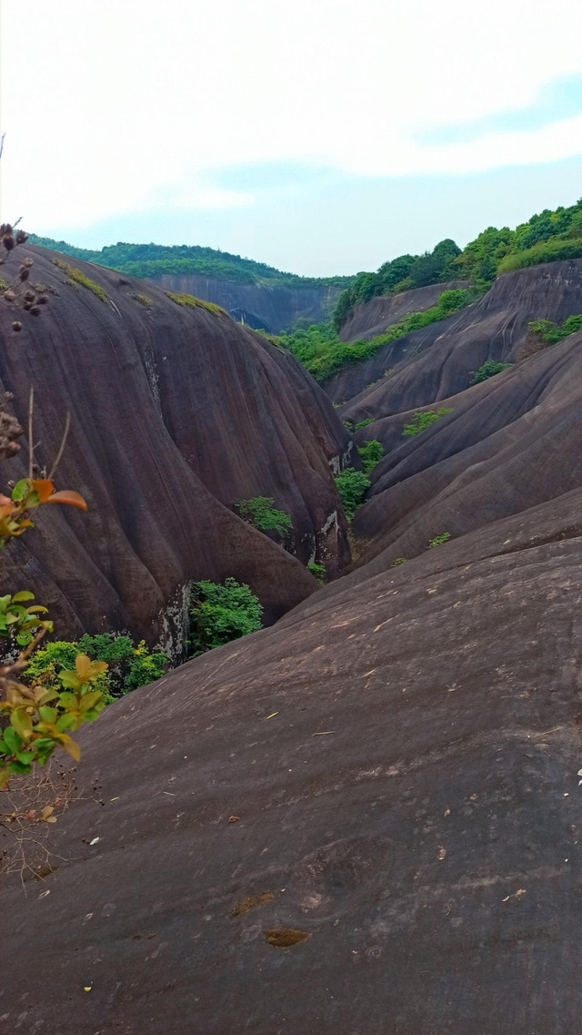 这里的岩石沟沟壑壑,远远看过去,就像是山峰上面的“掌纹”。走在这里,极目远眺,所看到的便是数不尽的连绵的青山。