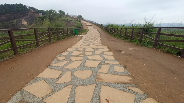 高椅岭这里专门设计了一条道路。这个道路设计的很好看,里面的地砖还有爱心的形状,简直太美了。不过,美中不足,因为这里没有被彻底开发,就连垃圾桶都很少,所以,路上能看到不少矿泉水瓶还有塑料袋。希望大家都能保护好这里的环境吧。