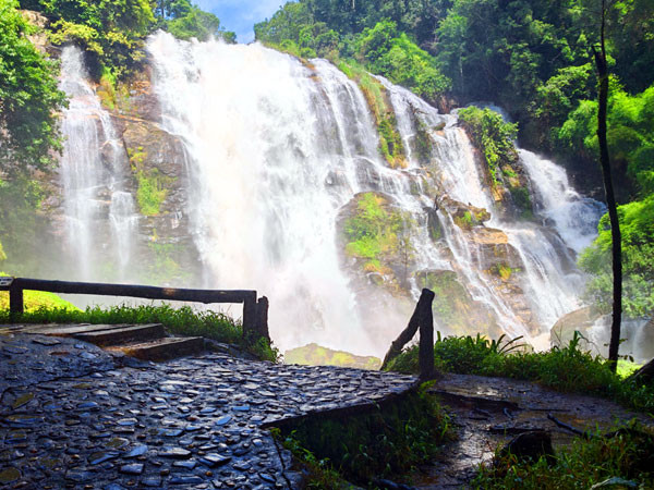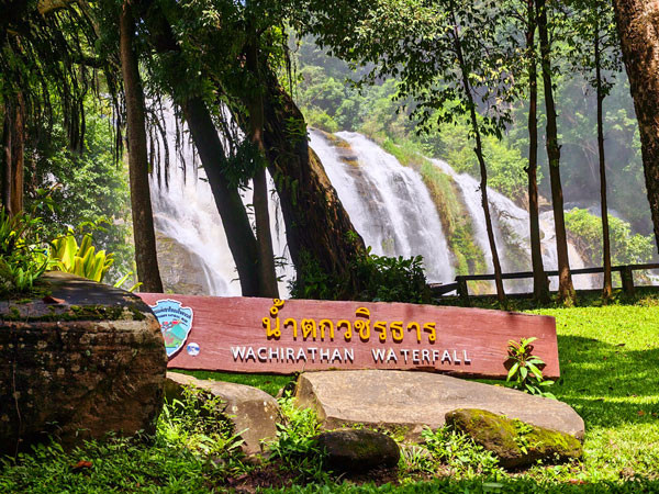 结束了首个瀑布的观光,继续乘车行驶不远便来到第二个:海拔约750米的Wachiratarn,中文名为瓦吉拉坦的瀑布景区。导游说这个瀑布在因他农山是尤为著名的自然景观之一。当人们还未走近,就听到了瀑布轰鸣的声音。