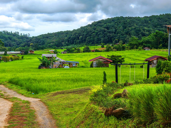 结束了因他农山的两个瀑布的观赏,我们乘车来到了位于因他农山里的一个当地少数民族的白族村寨做客。导游说,在因他农山上还有着苗族和克伦族等山地部落村庄,游客可以在此体验独特的传统风俗和工艺。