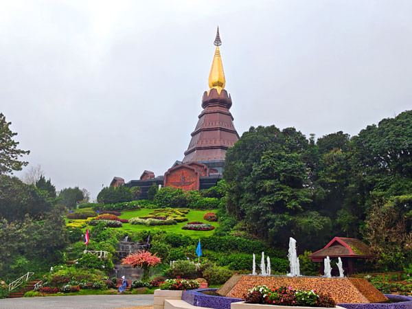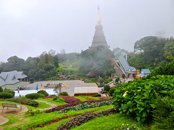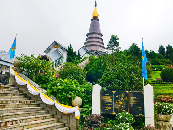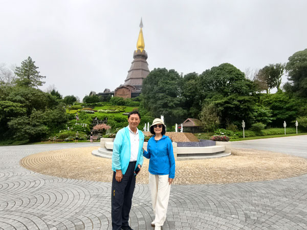 接着,我们来到泰国最高峰海拔2565.3341米的碑前留影,之后,转乘景区观光车来到山顶的帝后双塔。这里两座佛塔周围花园景色秀丽,登上佛塔的观景平台可以俯瞰周边壮丽的山景。