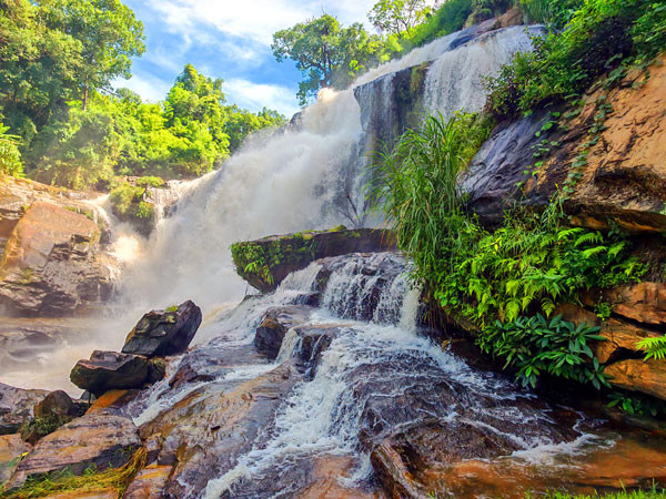 瀑布的水源来自因他侬山山顶的Mae Klang溪,瀑布落差约80米。水流从高耸的岩壁边缘倾泻而下,形成层叠景观,落入深潭后继续流淌。
