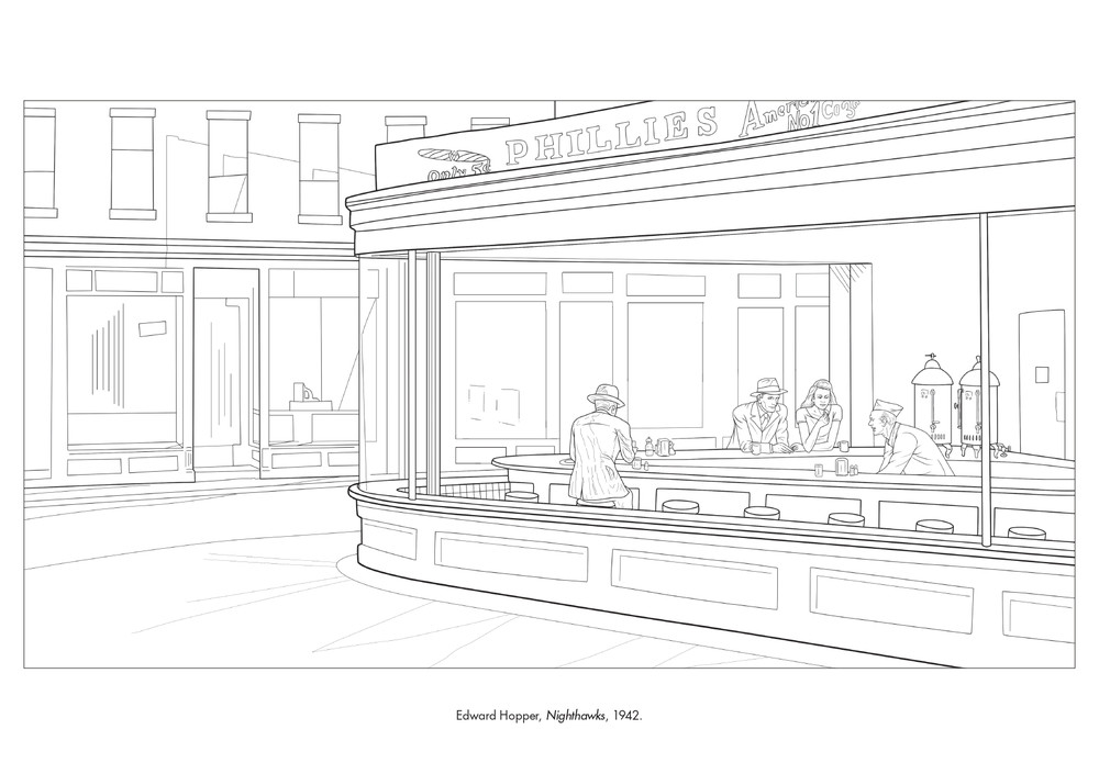近日,芝加哥艺术博物馆推出一系列馆藏名画的空白着色页面,馆藏名画《夜鹰》、《大碗岛的星期天下午》、《神奈川冲浪里》等均被收录其中。