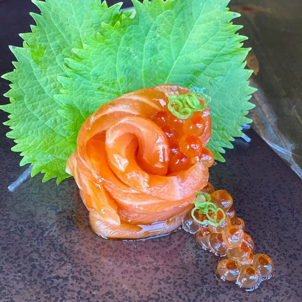 鲑鱼子超级的新鲜超级的美味。也是大家都要打卡的一道菜!味道有一点点腥,但是可以接受!嘴巴一抿。鱼籽就在口腔中爆炸开来!