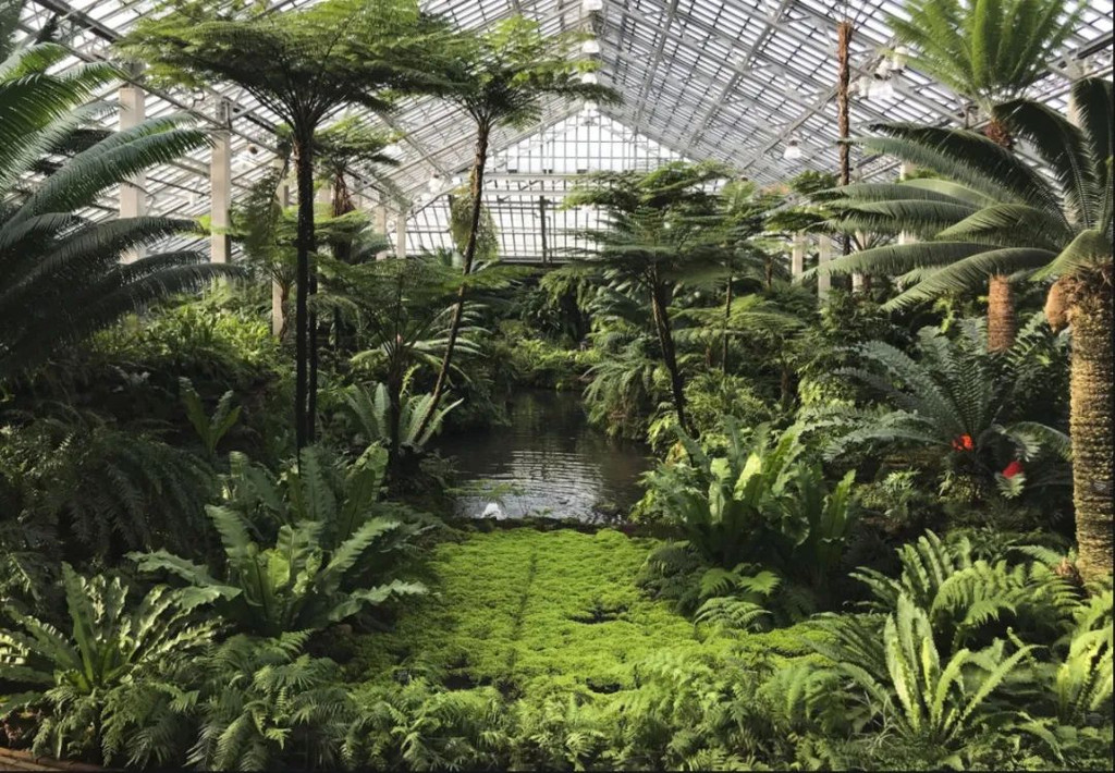 Jens Jensen在1906年设计了这个温室,目的是想让游客们一睹 伊利 诺斯州几百万年前的样子。其中郁郁葱葱的蕨类植物、露出地面的岩石和室内的泻湖使人很容易想起史前 芝加哥 的沼泽景观。