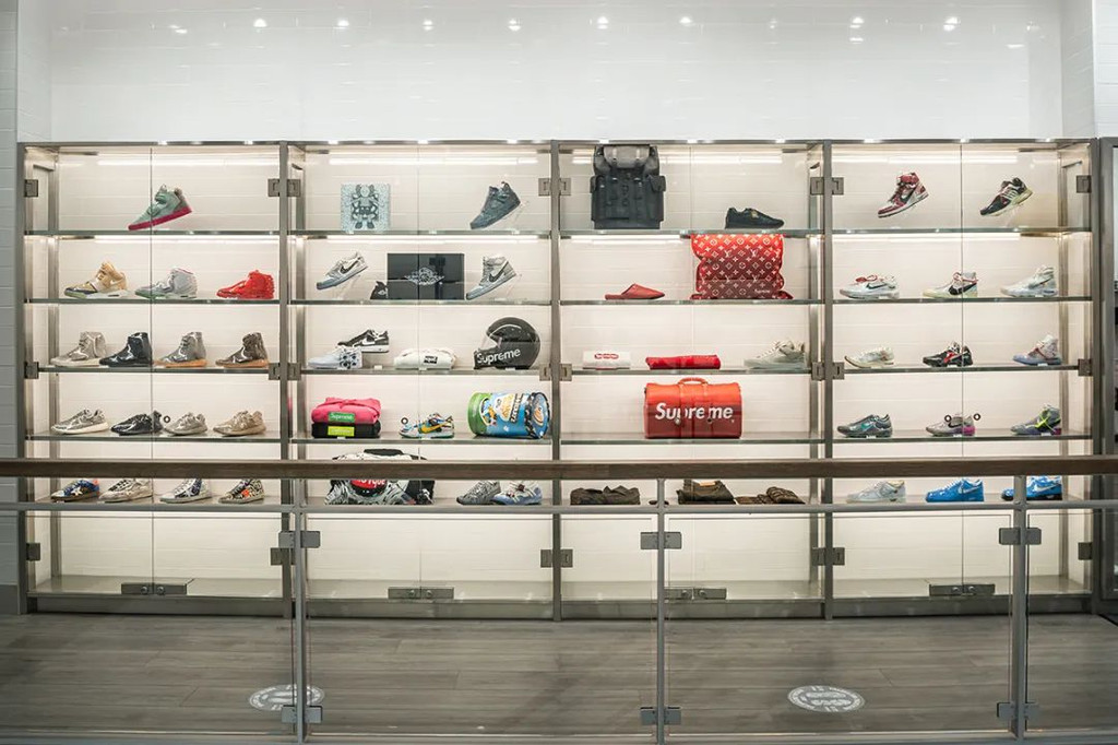 一楼主要是一些各种各样款式的球鞋~只要你能想到的球鞋,这里几乎都可以买得到。从白色扶梯上去那真的不得了了,有1W6美金的Dior联名AJ1镇宅,旁边还挂满了各式各样的Supreme Box还有各式各样没见过的新款!
