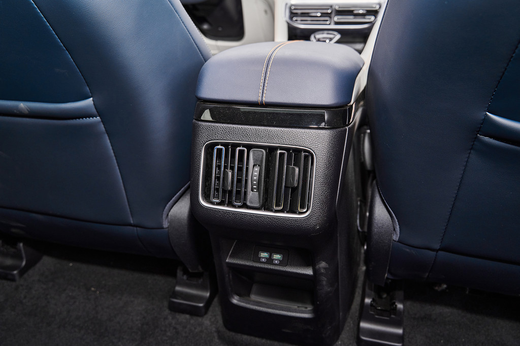 后排设置了独立出风口后排乘客的舒适感受进一步提升,下面还有两个USB充电接口。