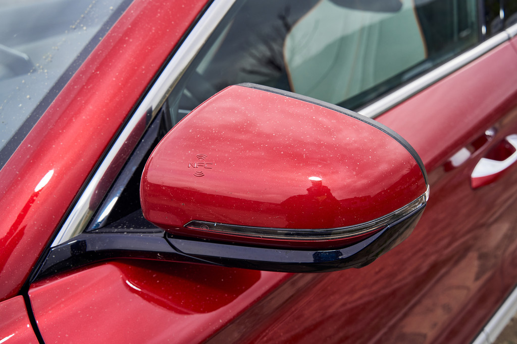 后视镜上集成了NFC手机钥匙的功能,使用手机轻触即可解锁车辆,又是新颖便捷的功能。